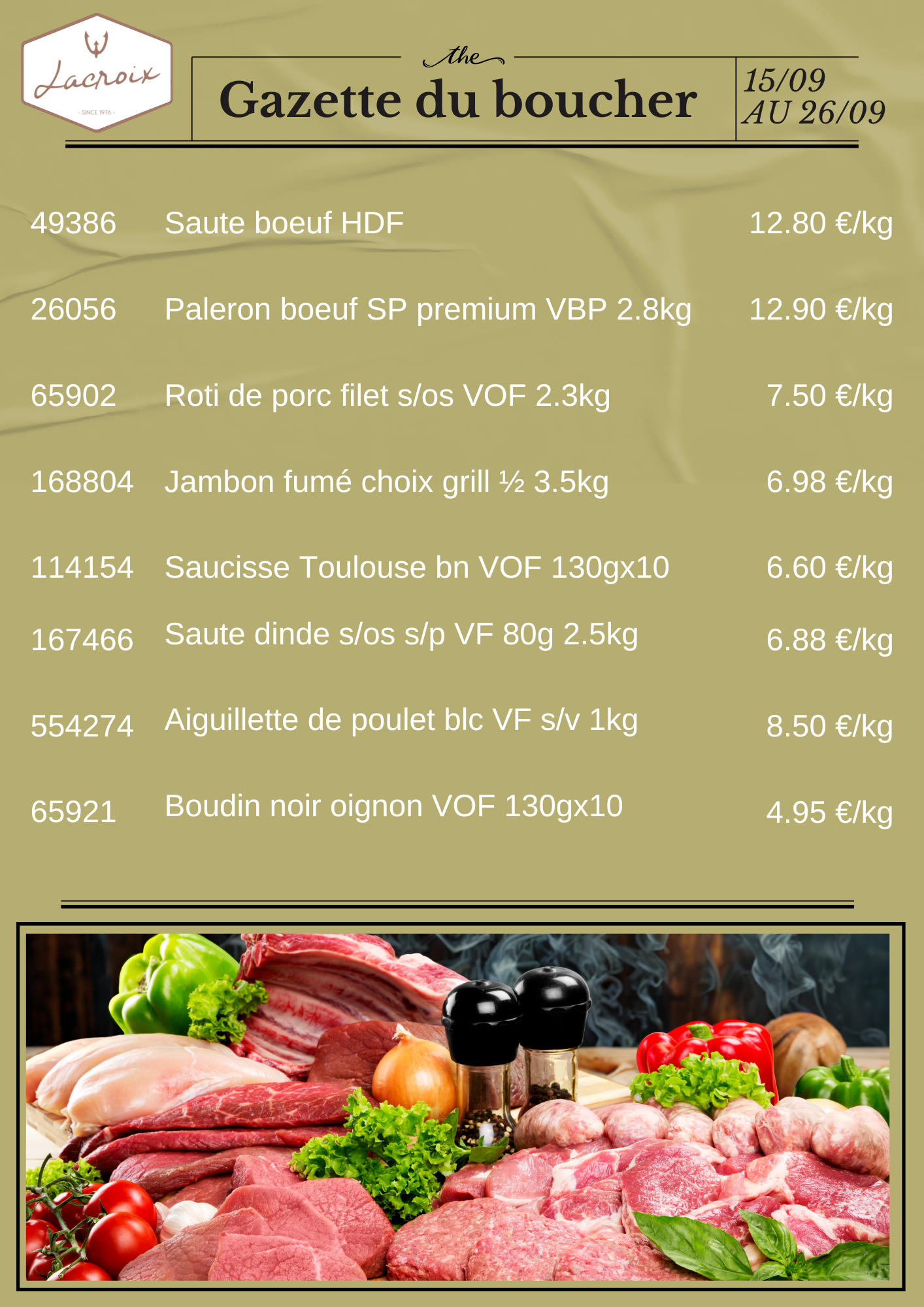 Nos catalogues et promotions ✻ Téléchargez notre catalogue Sélection Fromagère en cliquant sur cette icône ✻ Téléchargez notre catalogue GLACES en cliquant sur cette icône ✻ Téléchargez notre catalogue Frais&co de ce mois en cliquant sur cette icône ✻ Téléchargez notre catalogue Cuis’in de ce mois en cliquant sur cette icône ✻ Téléchargez notre catalogue Frais&co du mois prochain en cliquant sur cette icône ✻ Téléchargez notre catalogue Cuis’in du mois prochain en cliquant sur cette icône ✻ La Gazette du boucher ✻ Offre du moment ✻